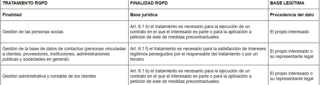 RIVIA dispone de un Registro de Actividades de Tratamiento donde se detallan cada uno de los siguientes tratamientos realizados como responsable de tratamiento: